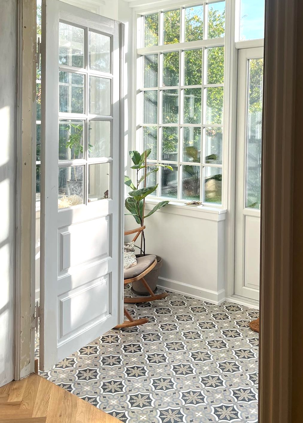 This handmade encaustic cement tile in Art Nouveau style brings timeless elegance to your interior. A classic European pattern in Nordic colors.