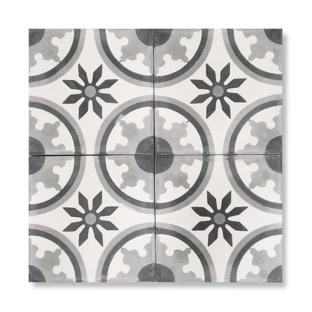 This handmade encaustic cement tile is available in combinations of all 30 colors. Furthermore the pattern is available in other sizes of the square shape.