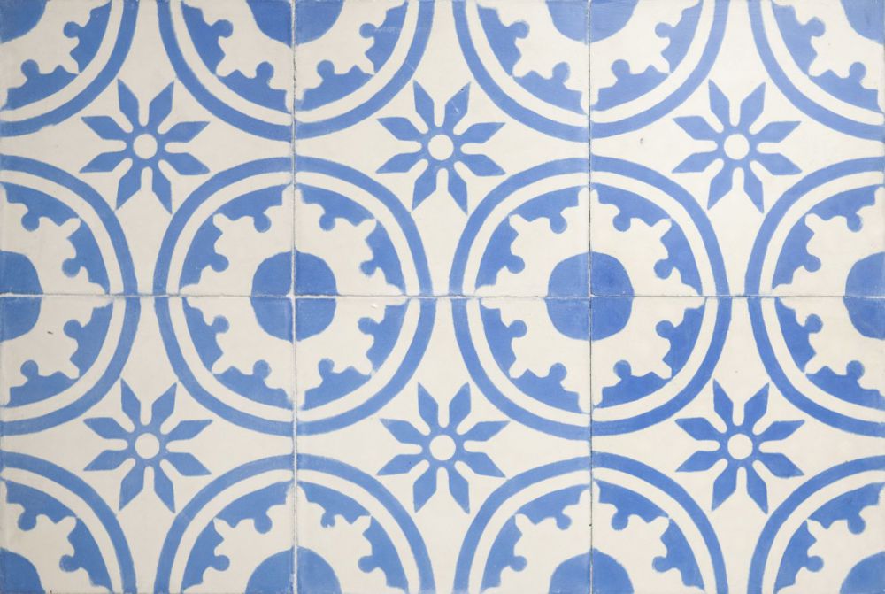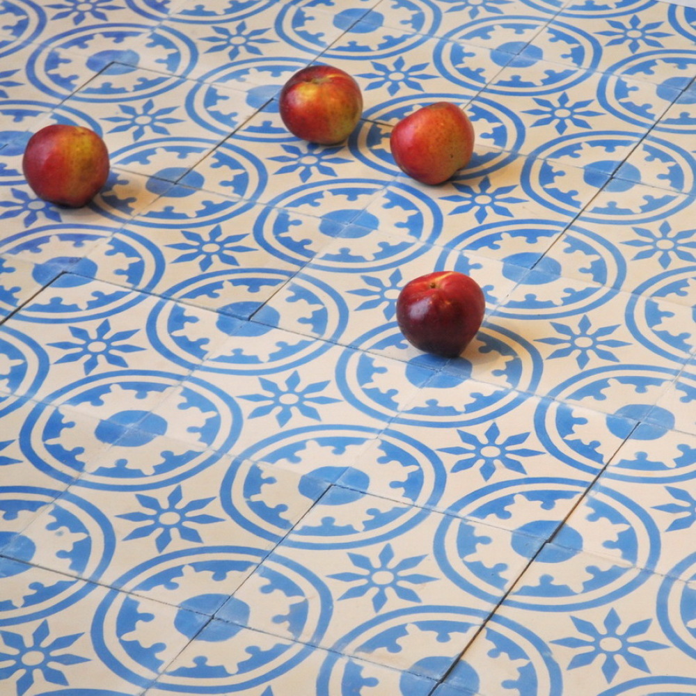 This handmade encaustic cement tile is available in combinations of all 30 colors. Furthermore the pattern is available in other sizes of the square shape.